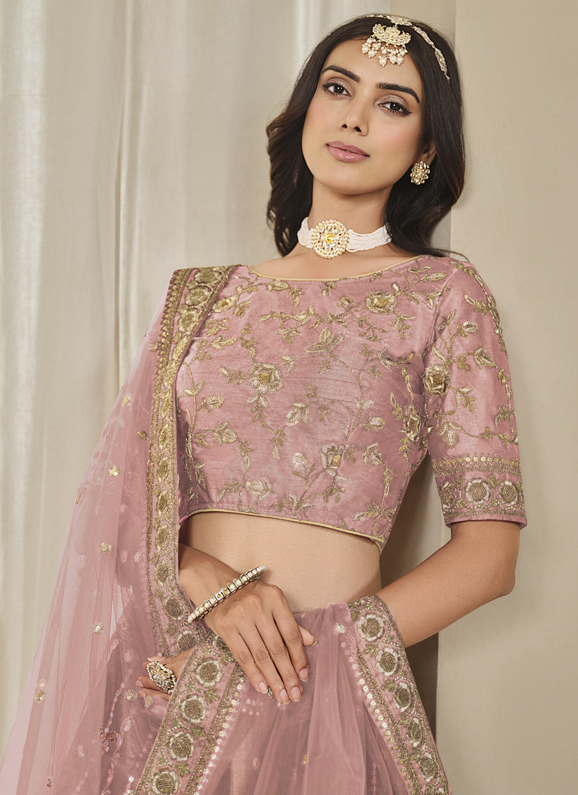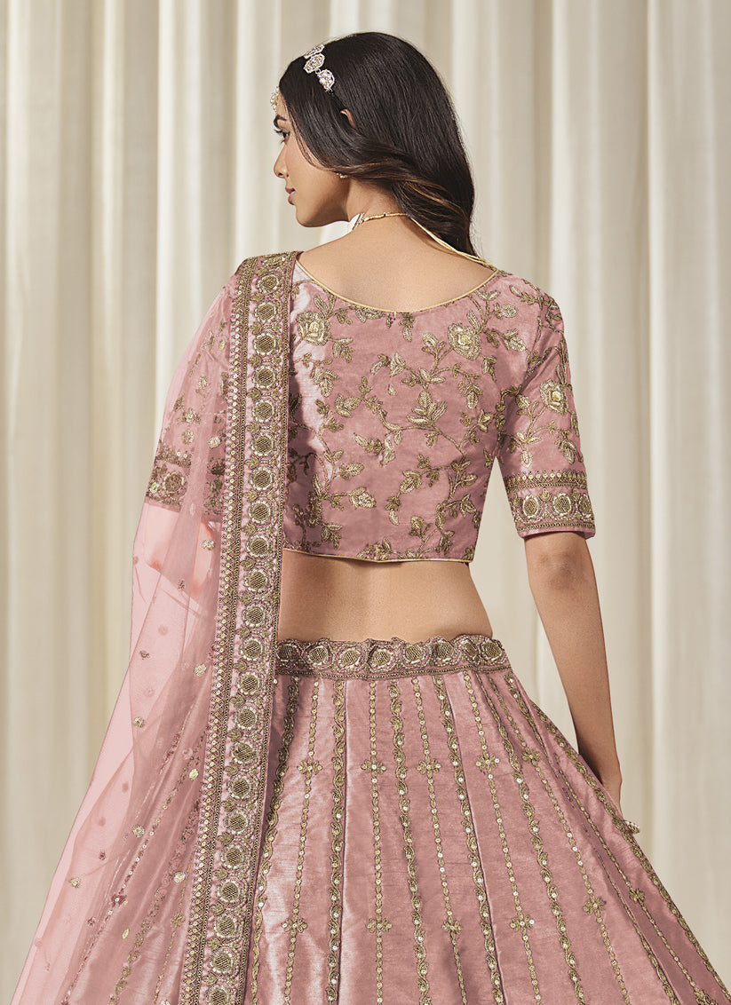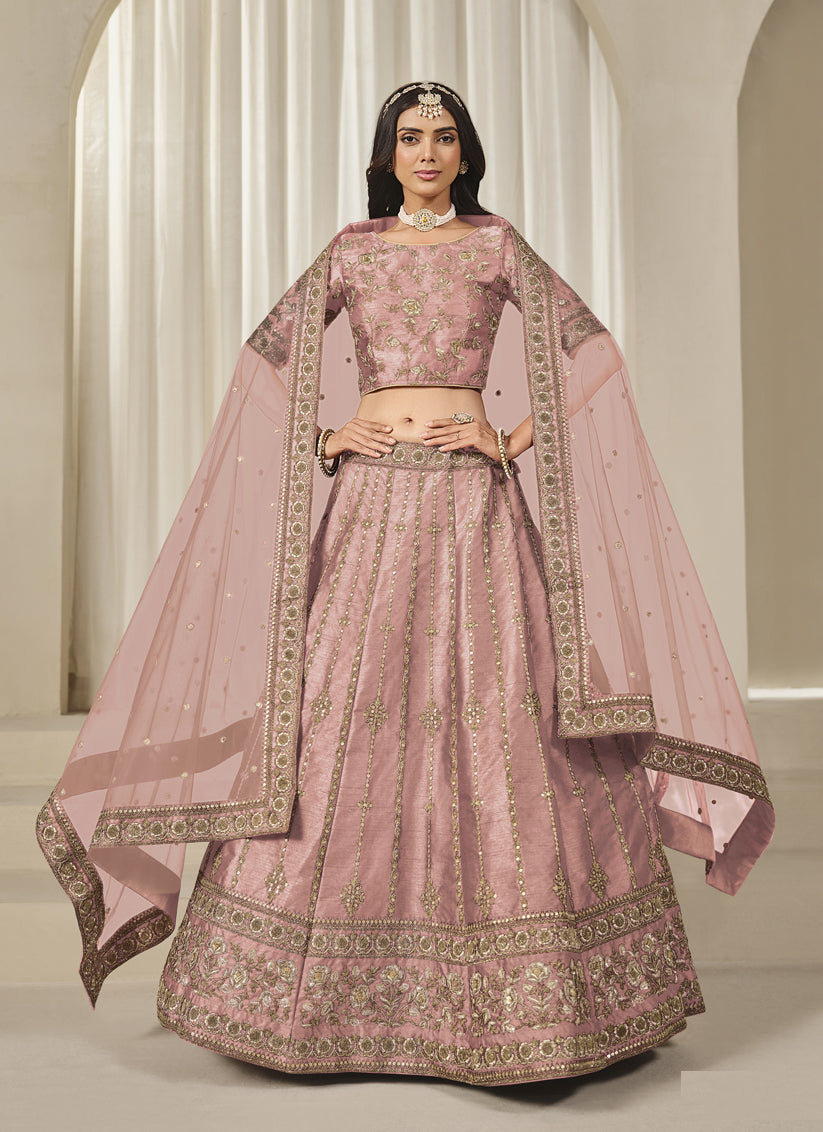 Adorable Coral Pink Art Silk Heavy Embroidered Lehenga Choli Set