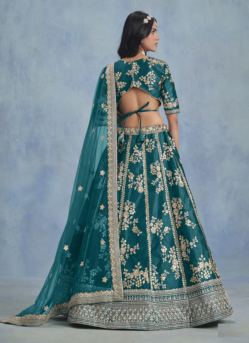 Alluring Morpich Art Silk Sequins Embroidered Lehenga Choli Set