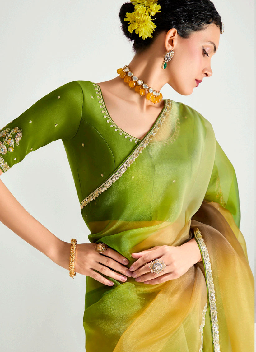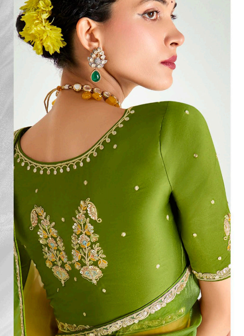 Alluring Multicolor Organza Tissue Embroidered Designer Wedding Saree