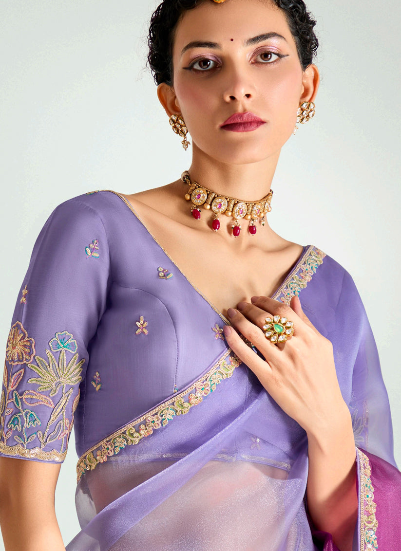 Amazing Lavender and Magenta Organza Tissue Embroidered Designer Wedding Saree