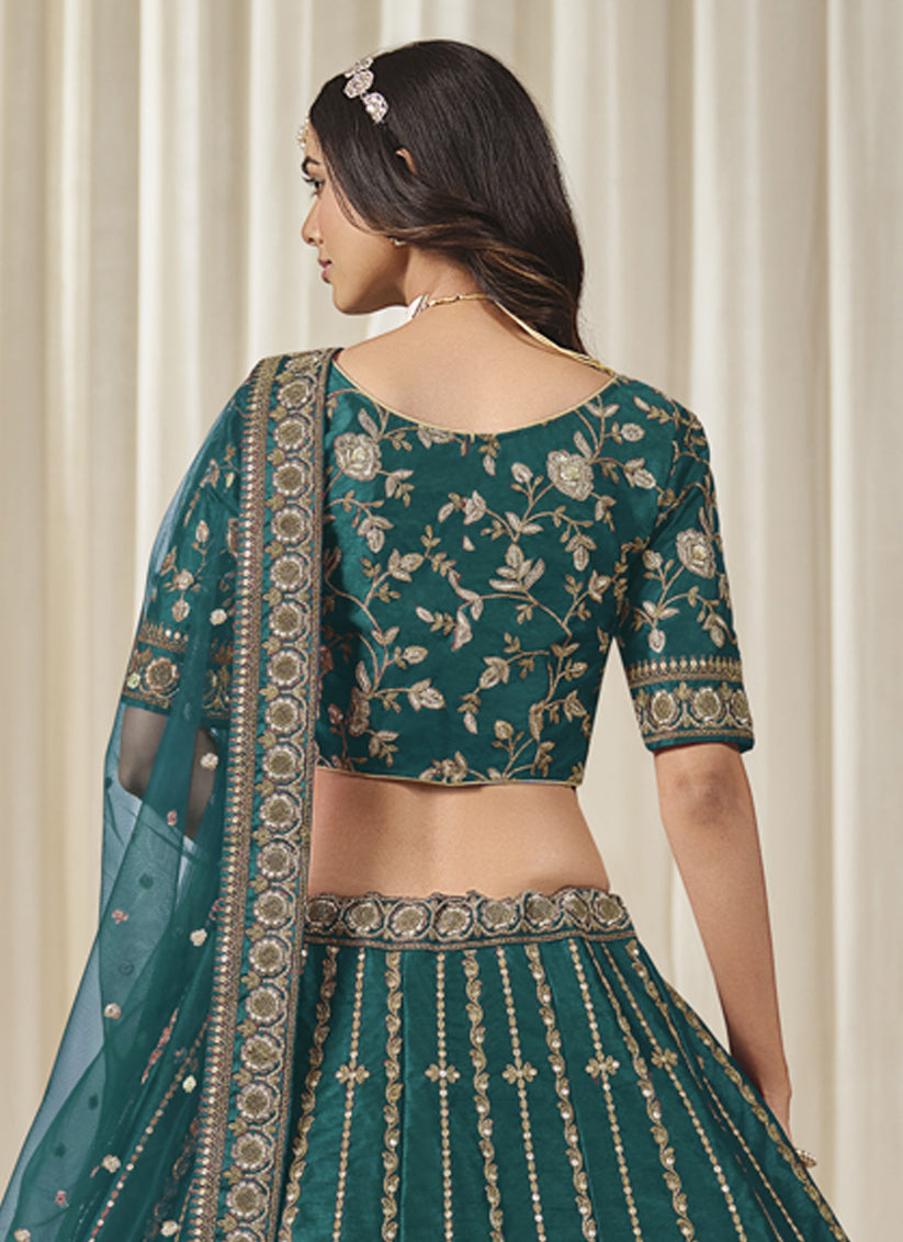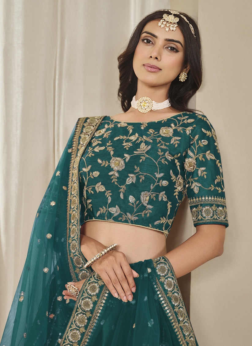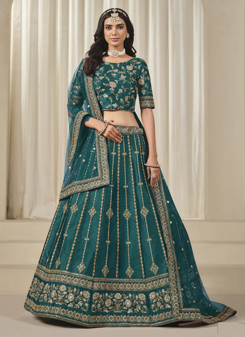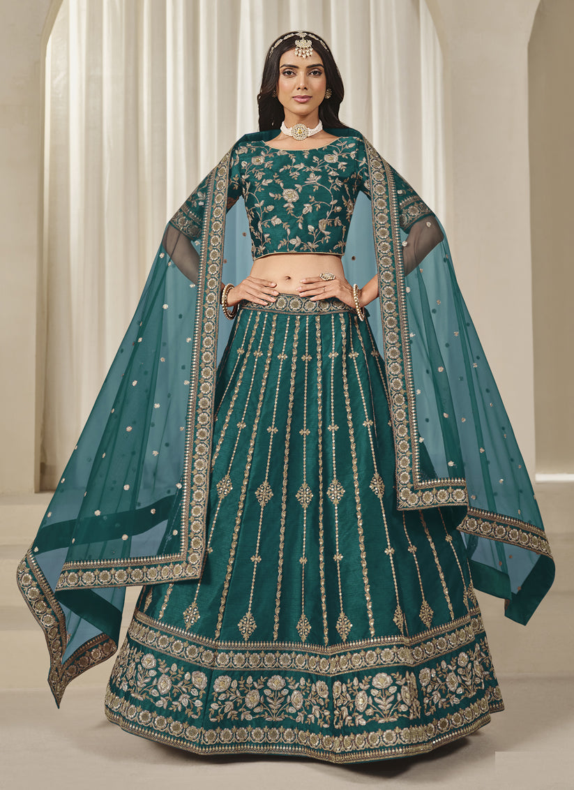 Amazing Rama Green Art Silk Embroidered Lehenga Choli Set