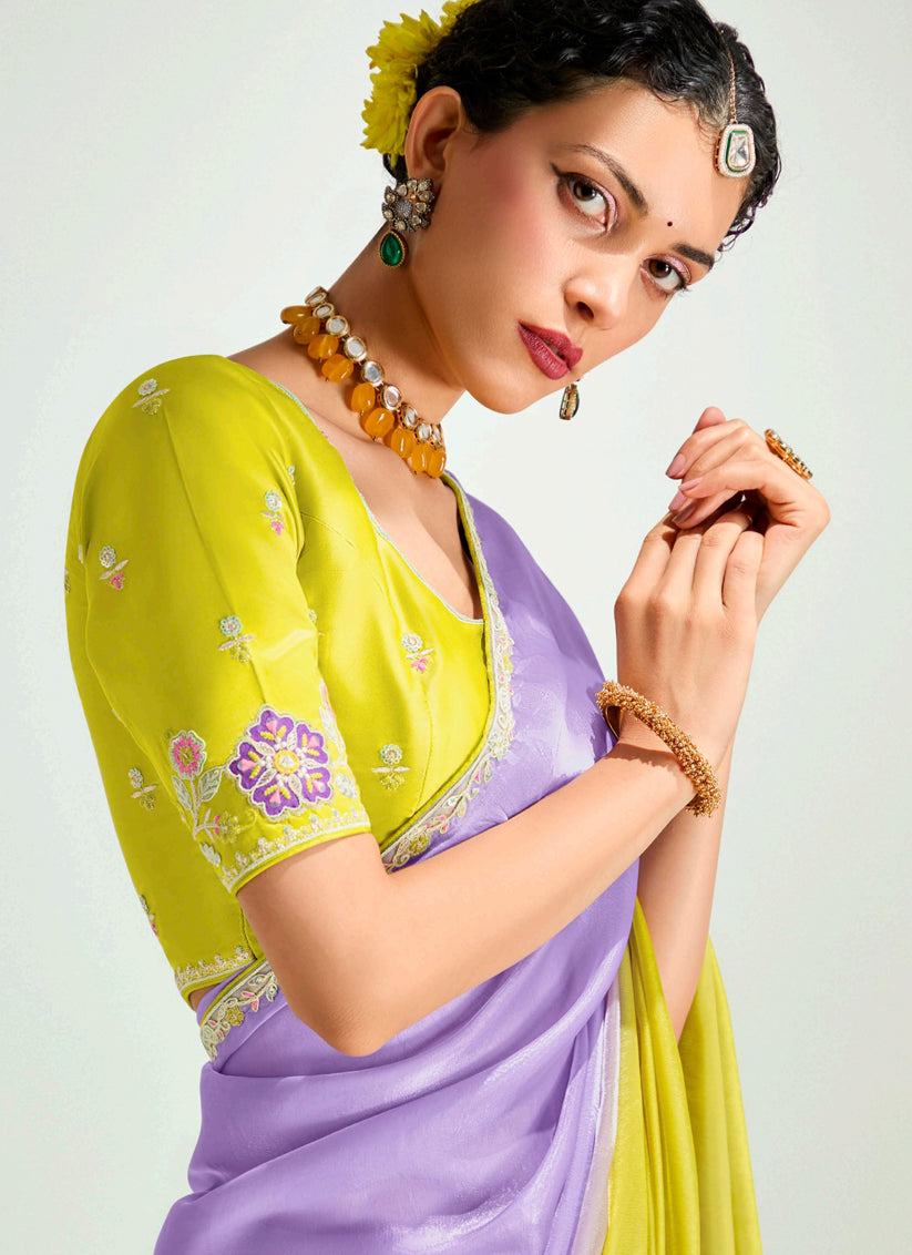 Bewitching Lavender and Lemon Yellow Organza Tissue Embroidered Designer Wedding Saree