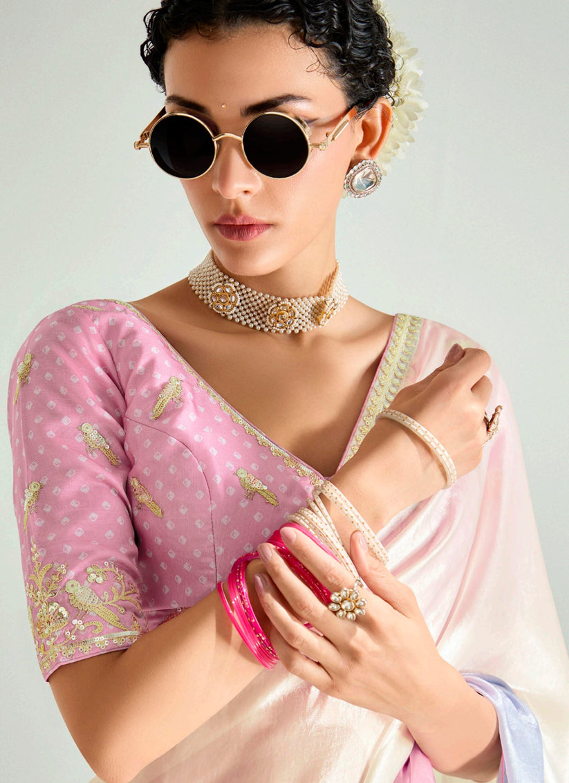 Charming Multicolor Organza Tissue Embroidered Designer Wedding Saree