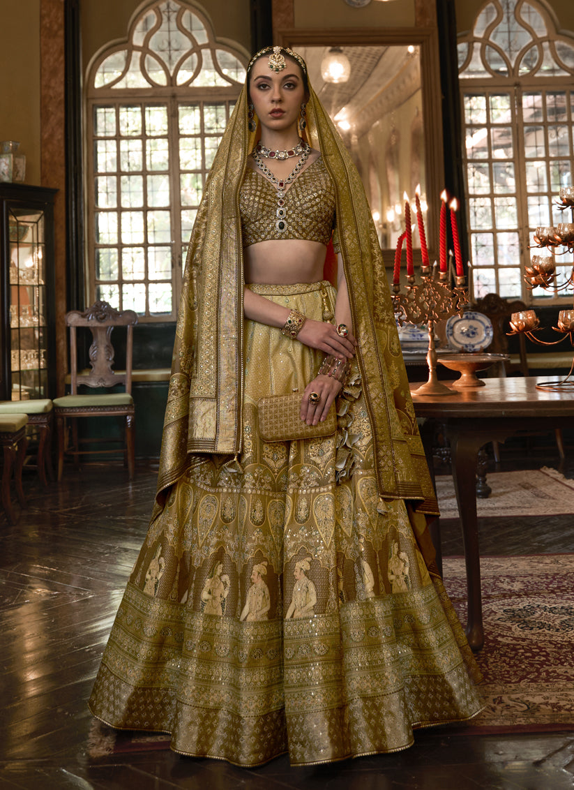 Dusty Gold Rajwadi Silk Embellished Lehenga Choli