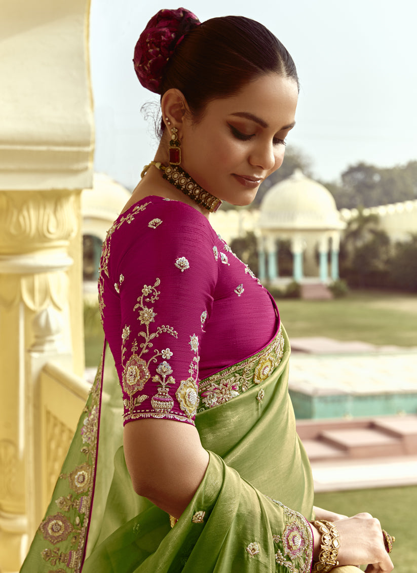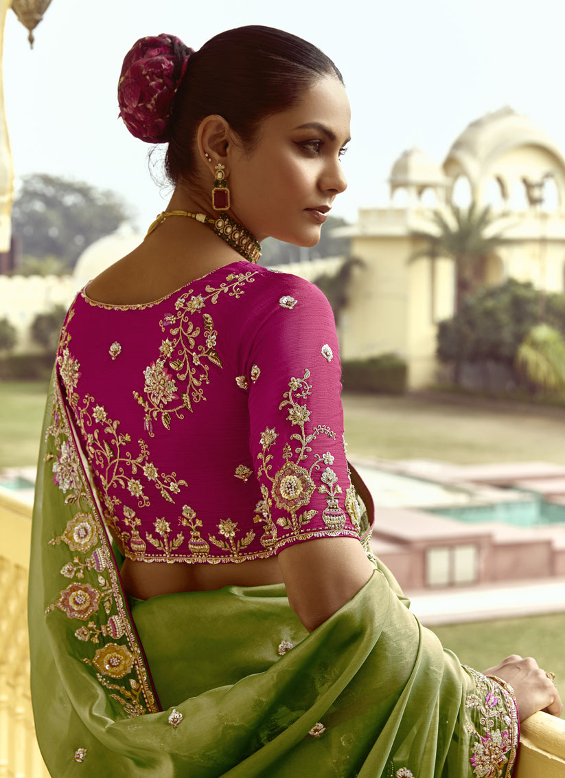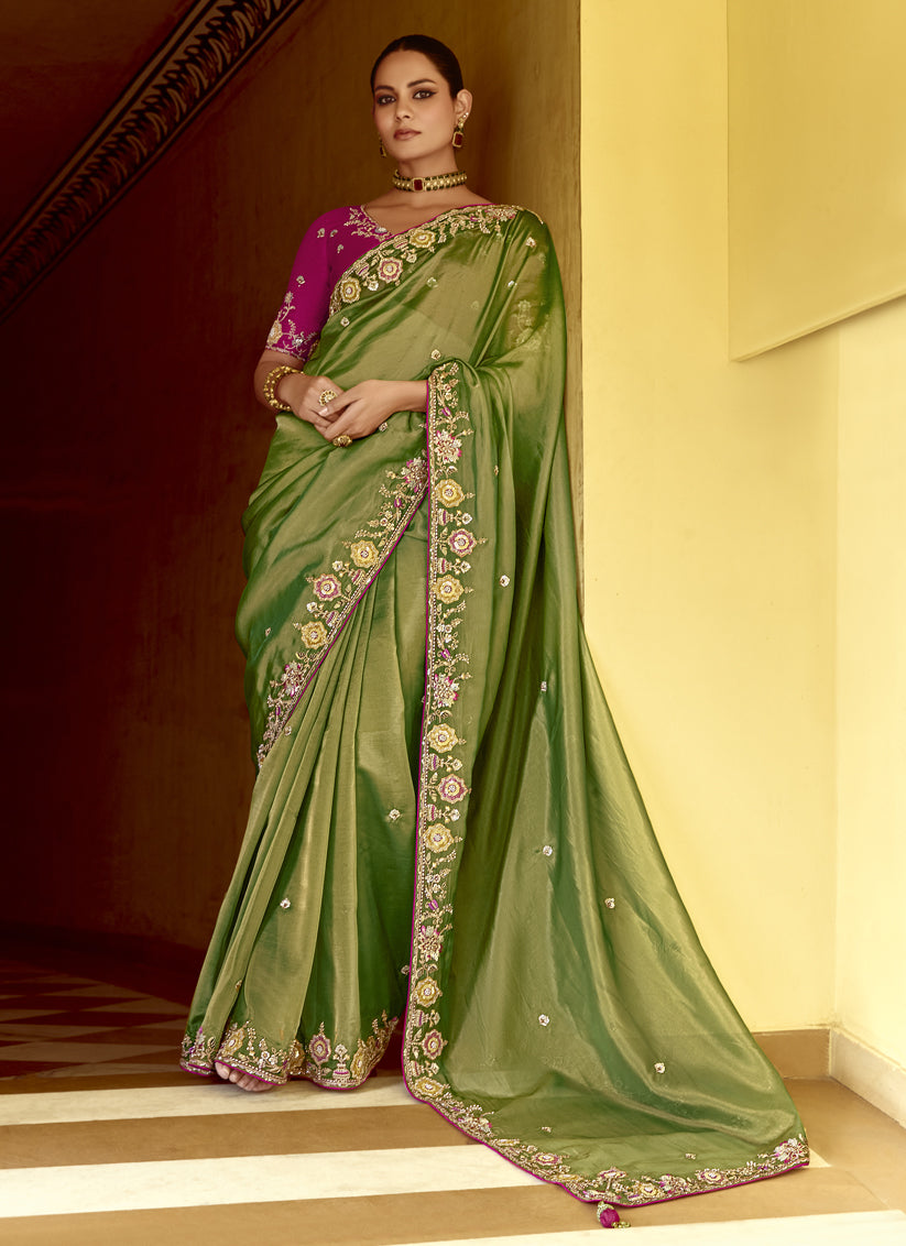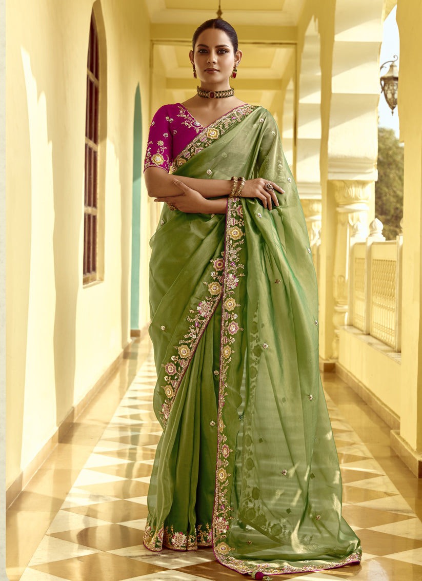 Flawless Fern Green Embroidered Designer Wedding Saree