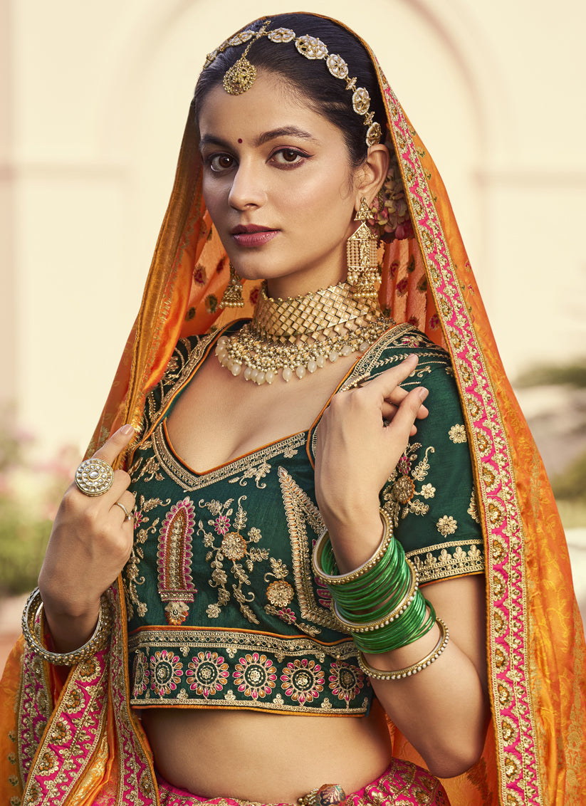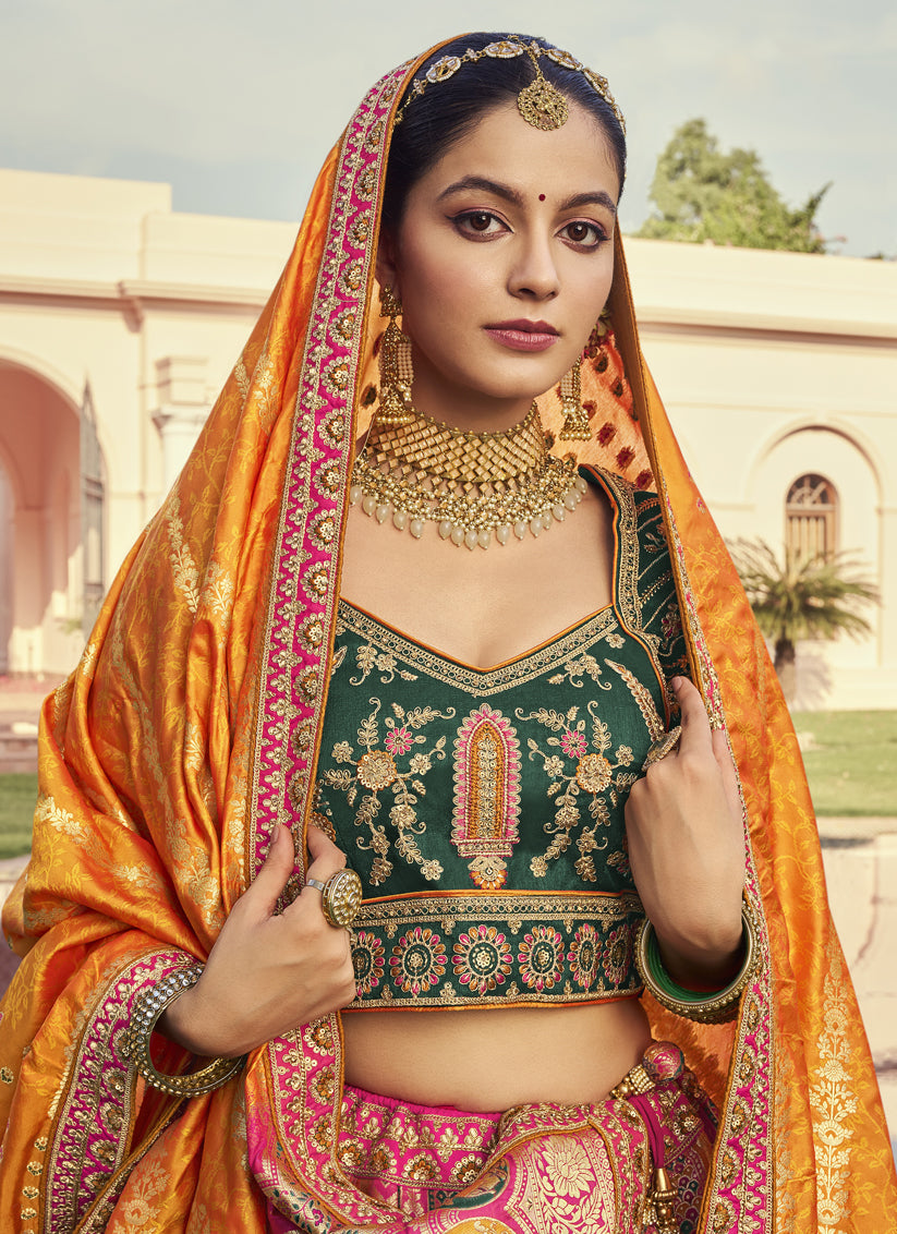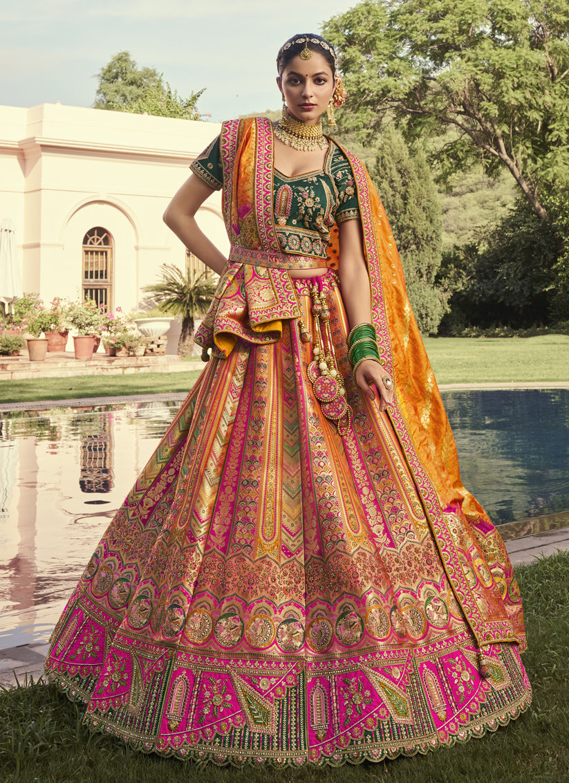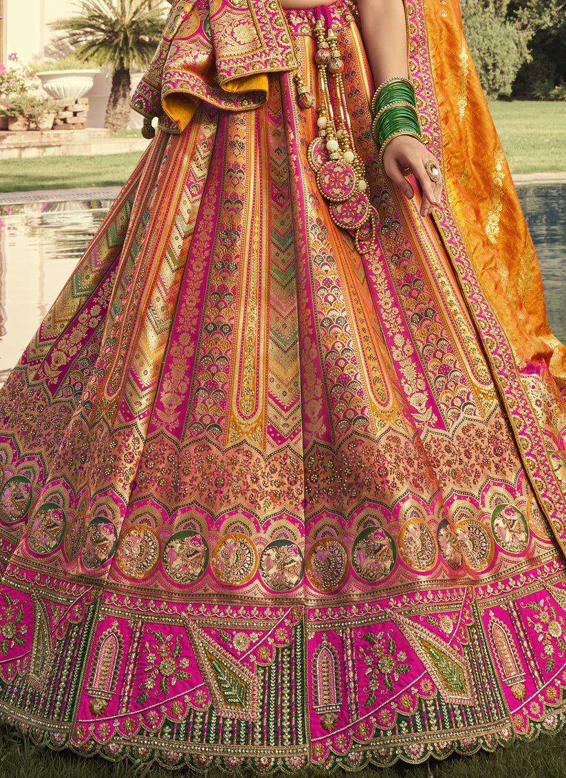Flawless Multicolor Banarasi Silk Handwork Bridal Lehenga Choli Set