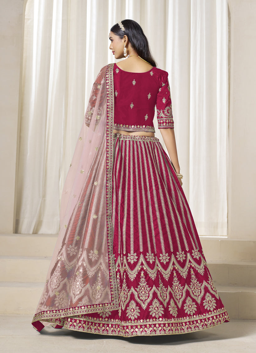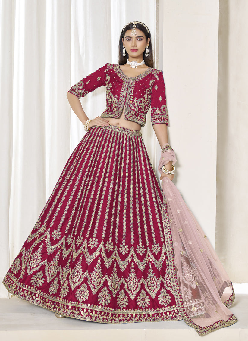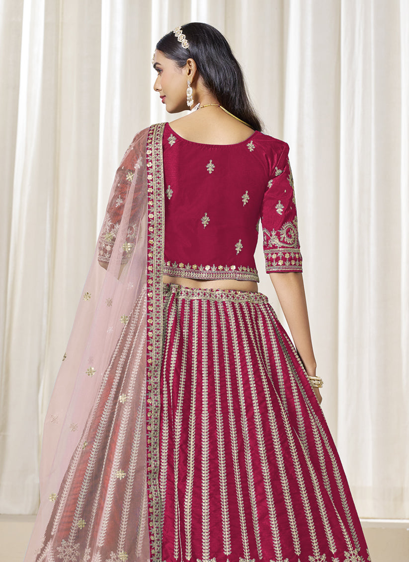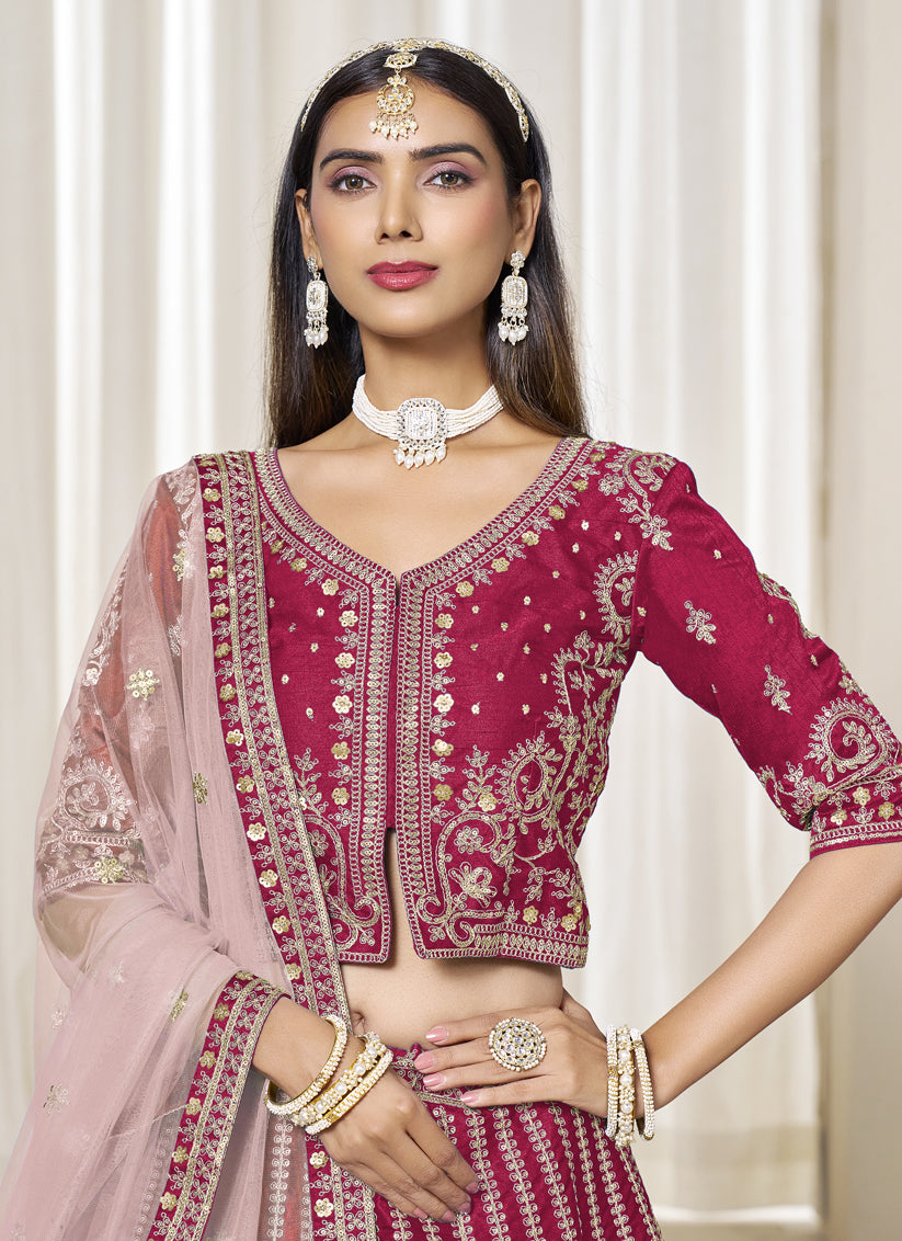 Gorgeous Raspberry Pink Art Silk Embroidered Wedding Lehenga Choli Set