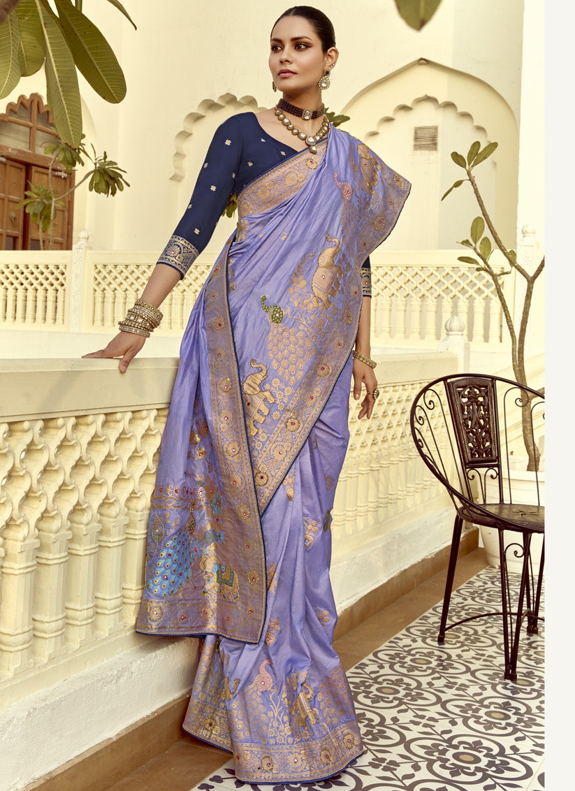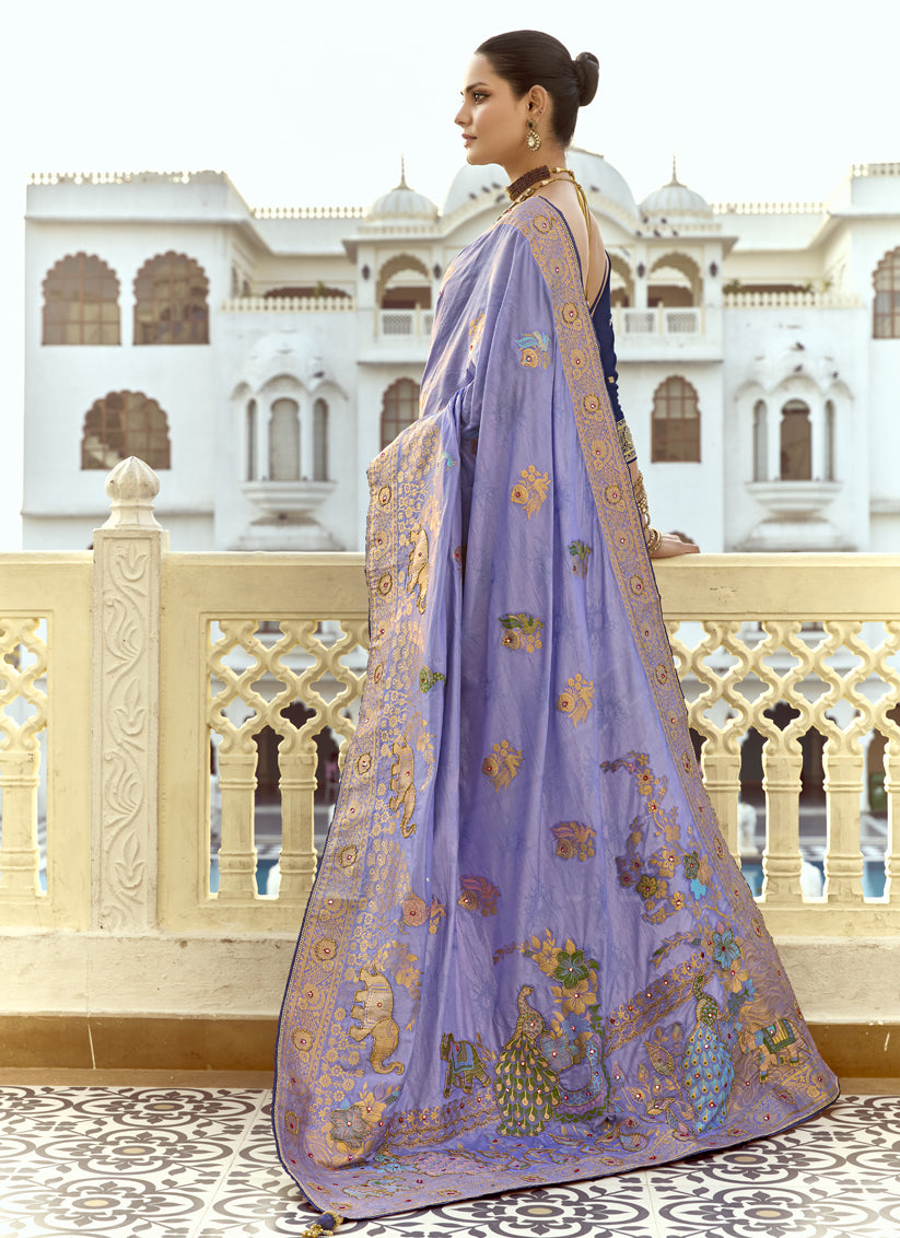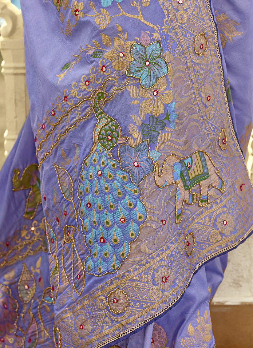 Graceful Lavender Dola Silk Handwork Wedding Saree