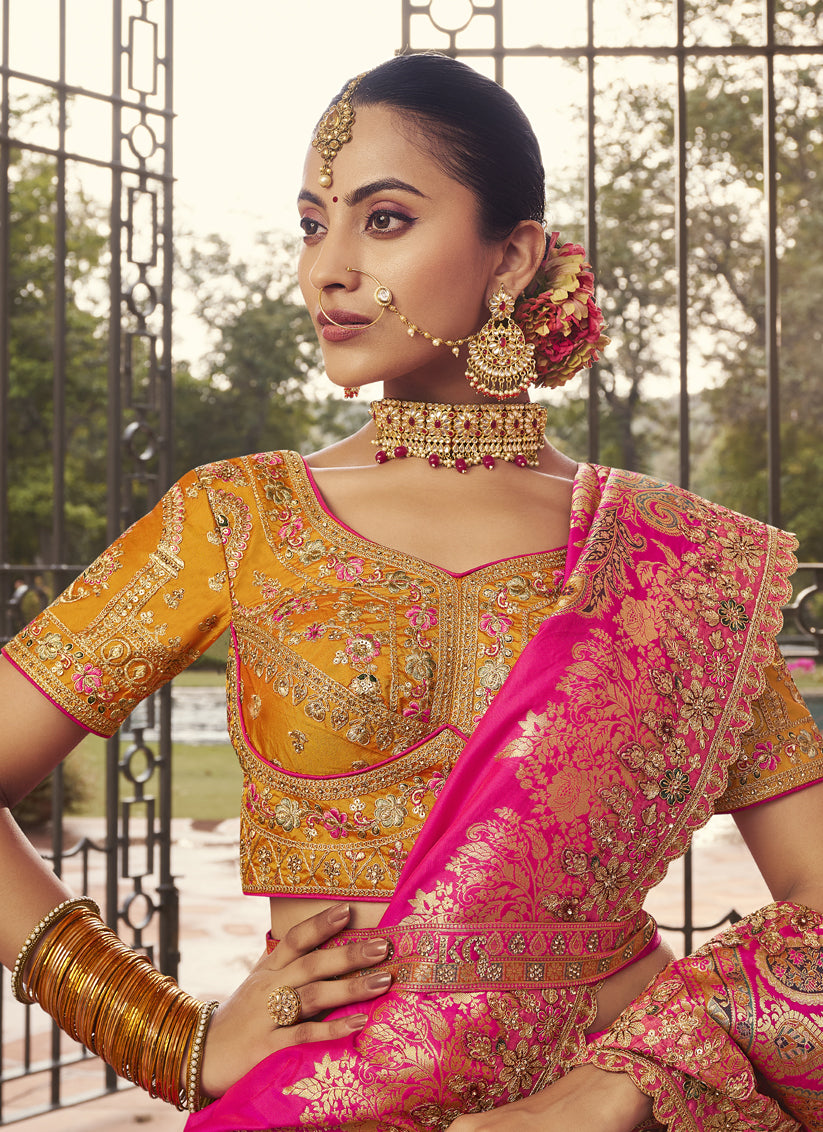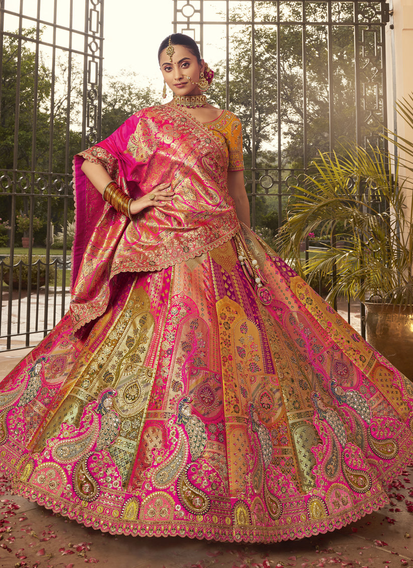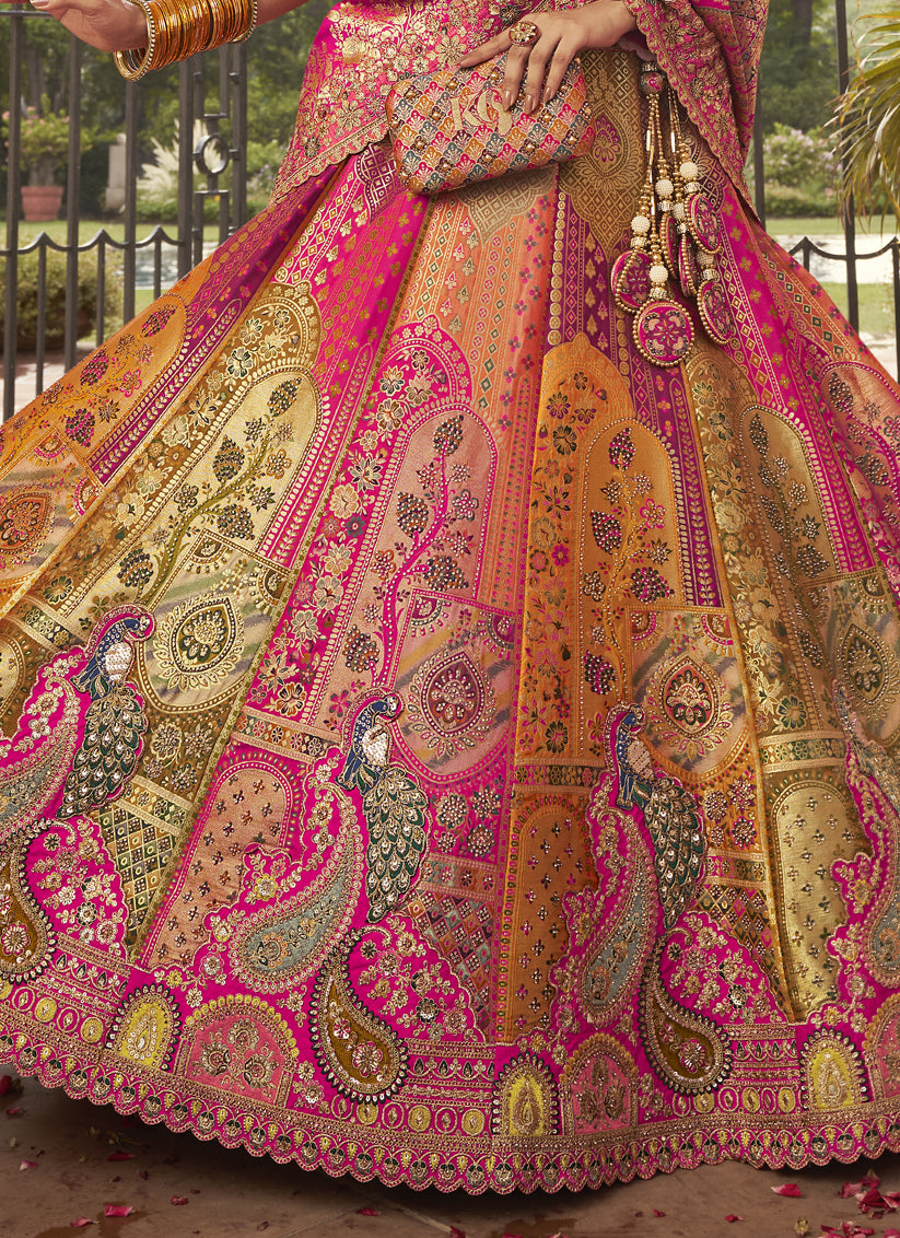 Graceful Multicolor Banarasi Silk Handwork Bridal Lehenga Choli Set