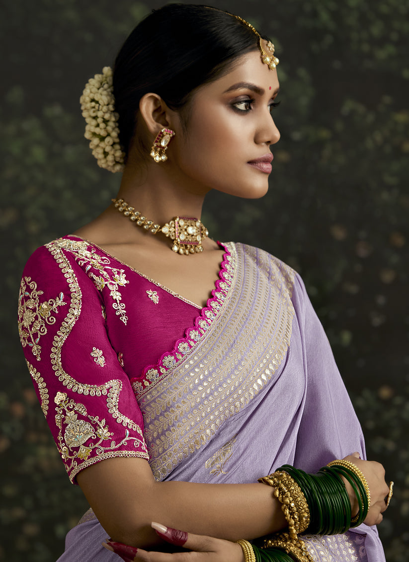 Immaculate Lavender Dola Silk Embroidered Wedding Saree