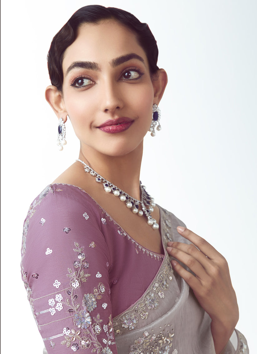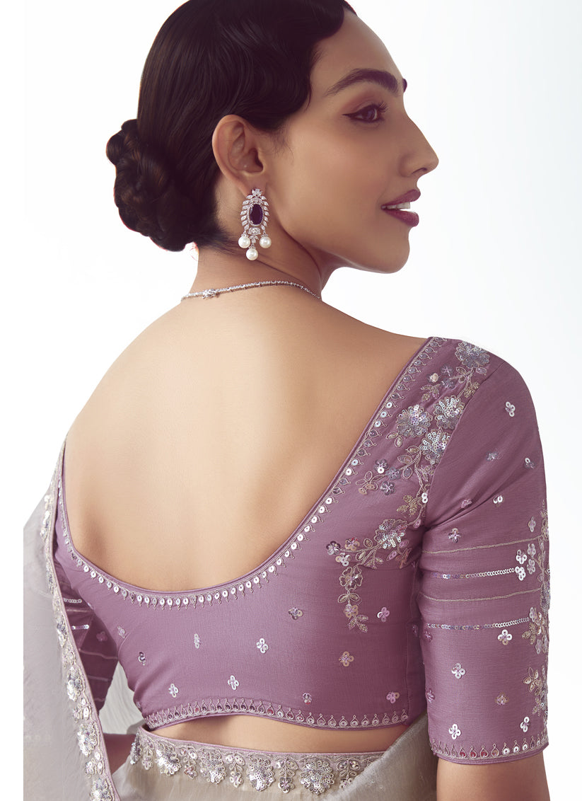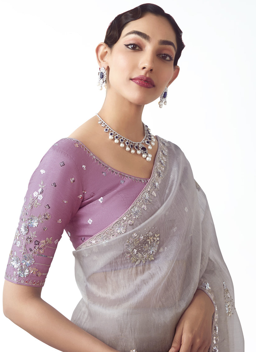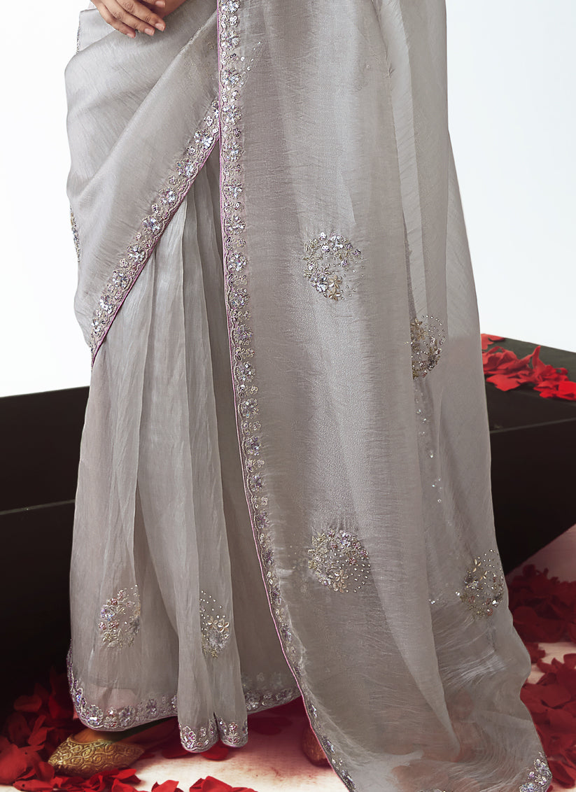Lovely Silver Tissue Organza Embroidered Wedding Saree