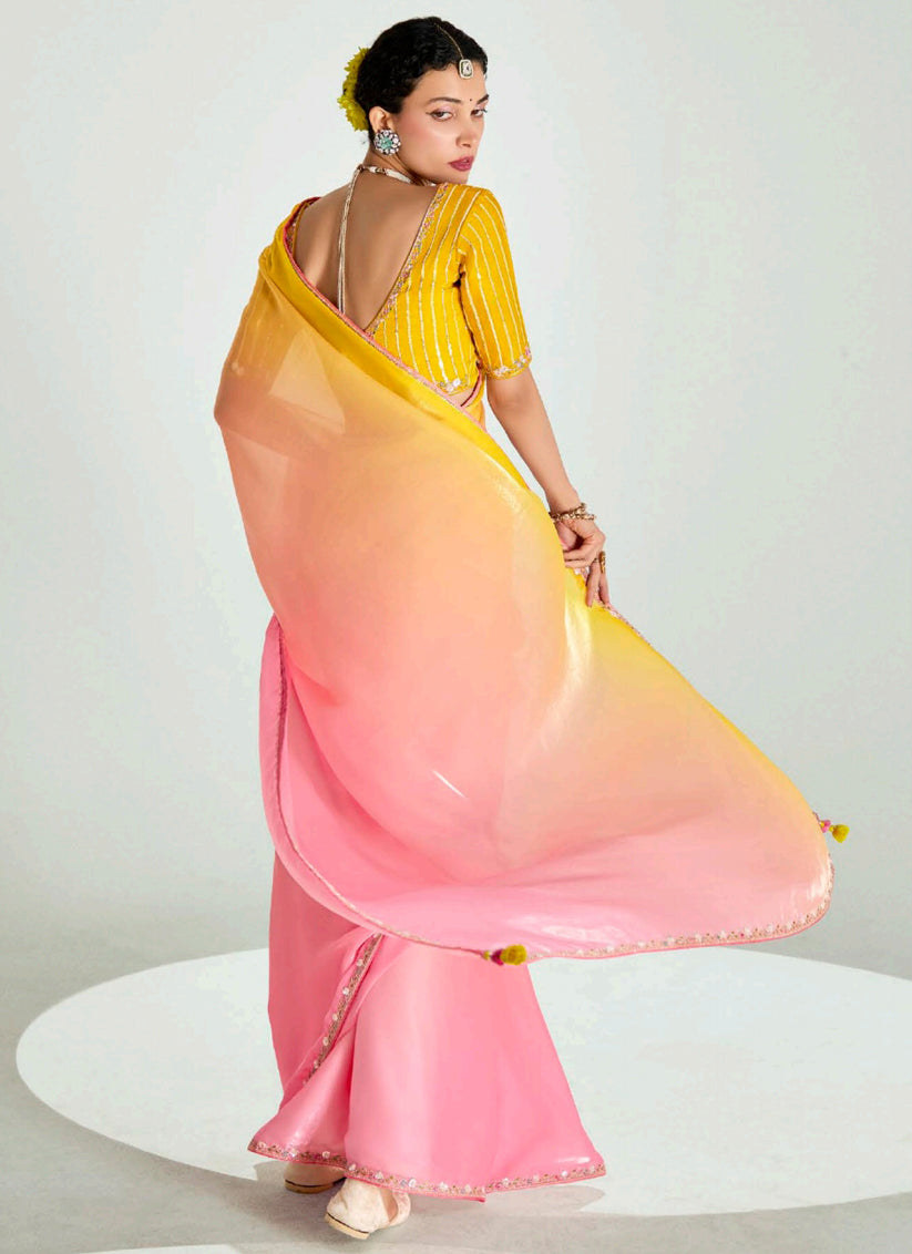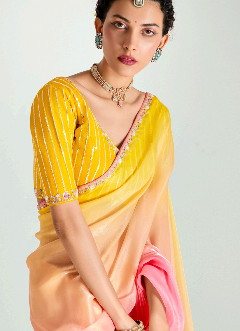 Mesmerizing Multicolor Organza Tissue Embroidered Designer Wedding Saree
