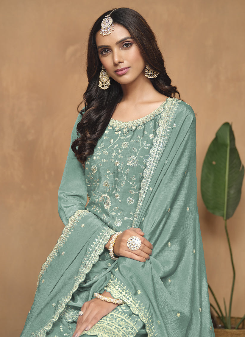 Mint Blue Chinnon Embroidered Palazzo Kameez