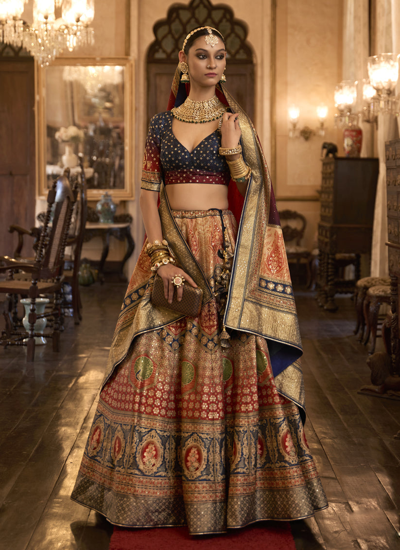 Multicolor Rajwadi Silk Embellished Lehenga Choli