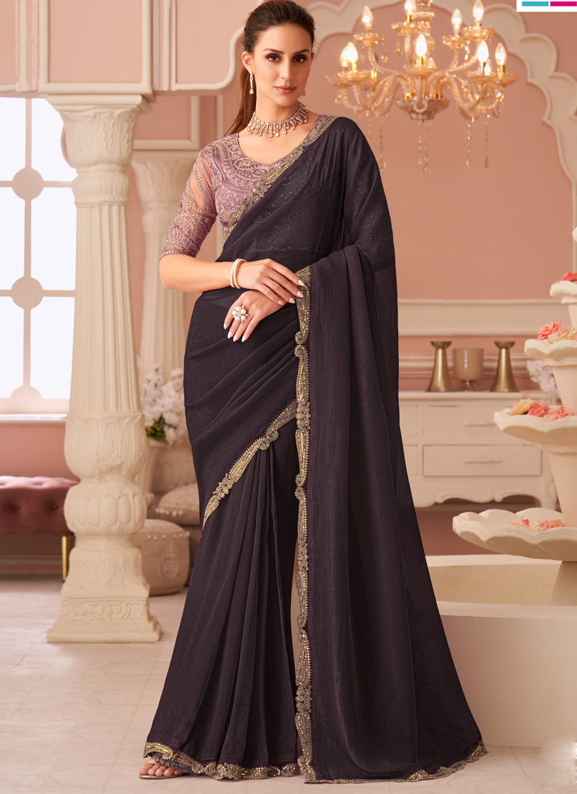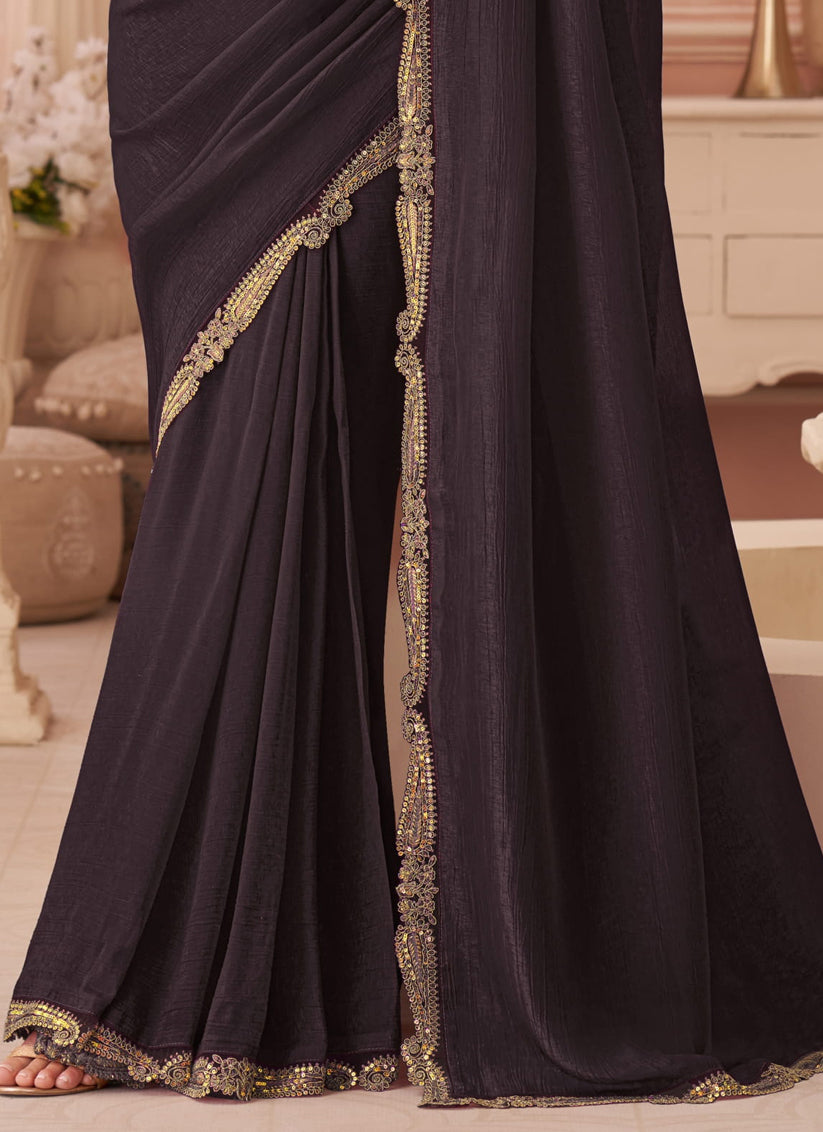 Magnetic Oak Brown Georgette Party Wear Saree with Embroidered Blouse