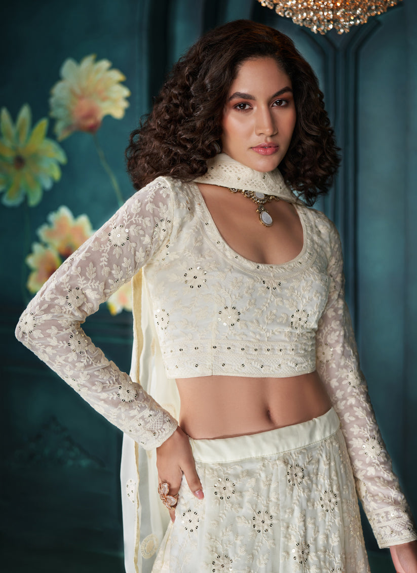 Off White Georgette Embroidered Designer Lehenga Choli Set