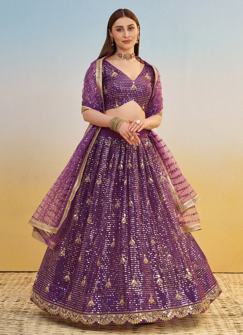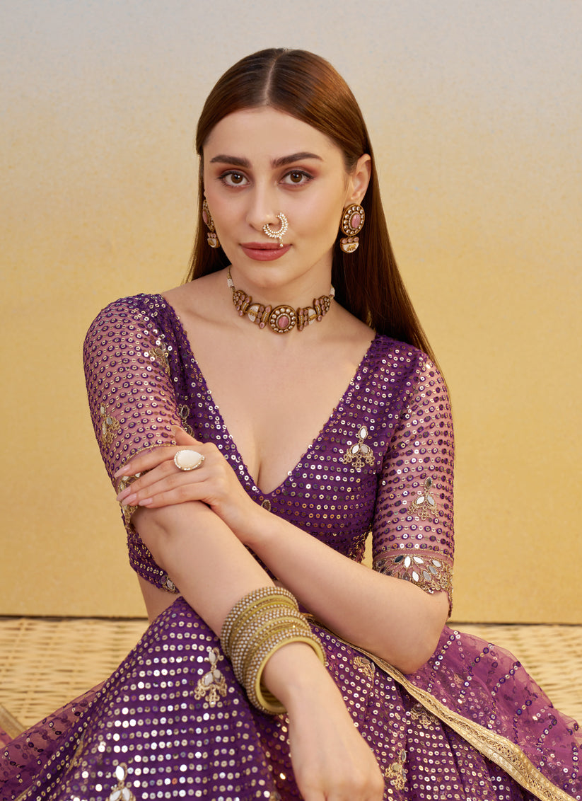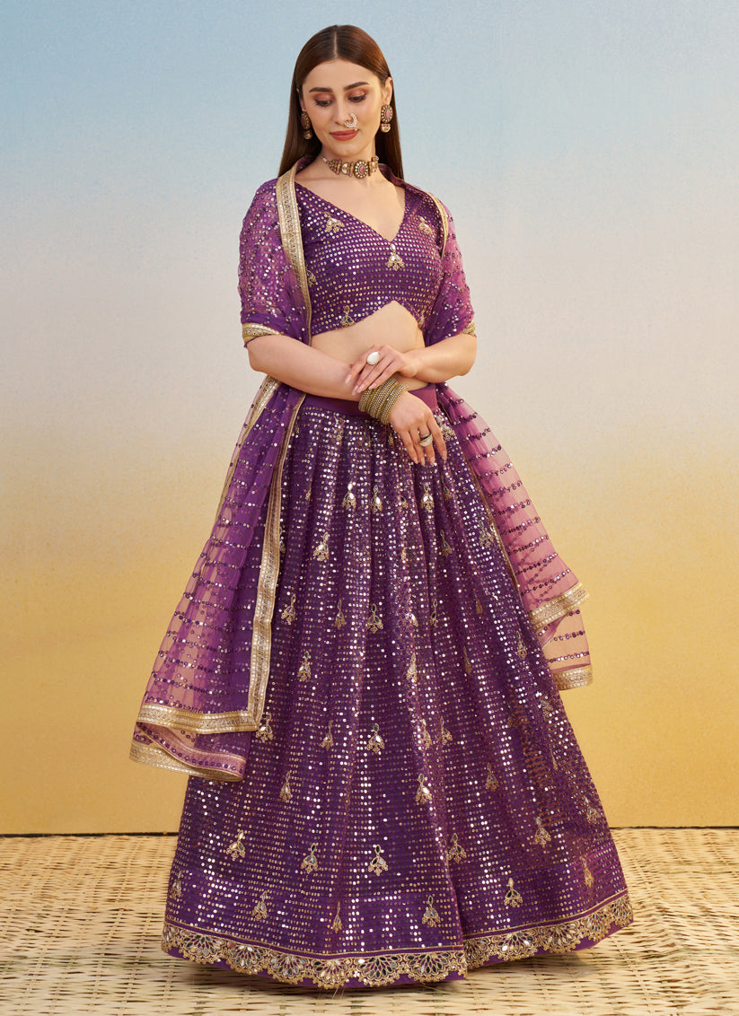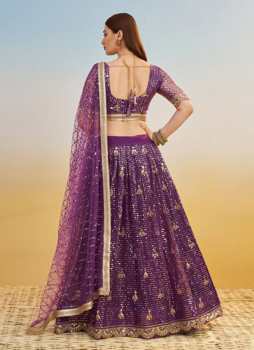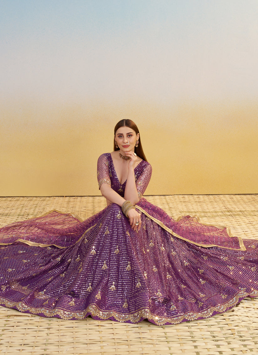 Outstanding Wine Net Designer Embroidered Lehenga Choli Set