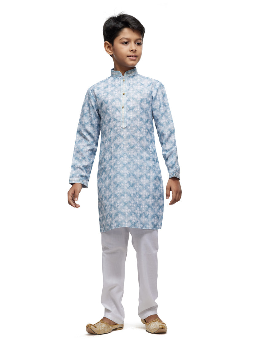 Sky Blue Boys Kurta Pyjama Set Fabric: Top - Cotton, Bottom - Art Banarasi Silk Work: Digital Print Dispatch Time:... Read more