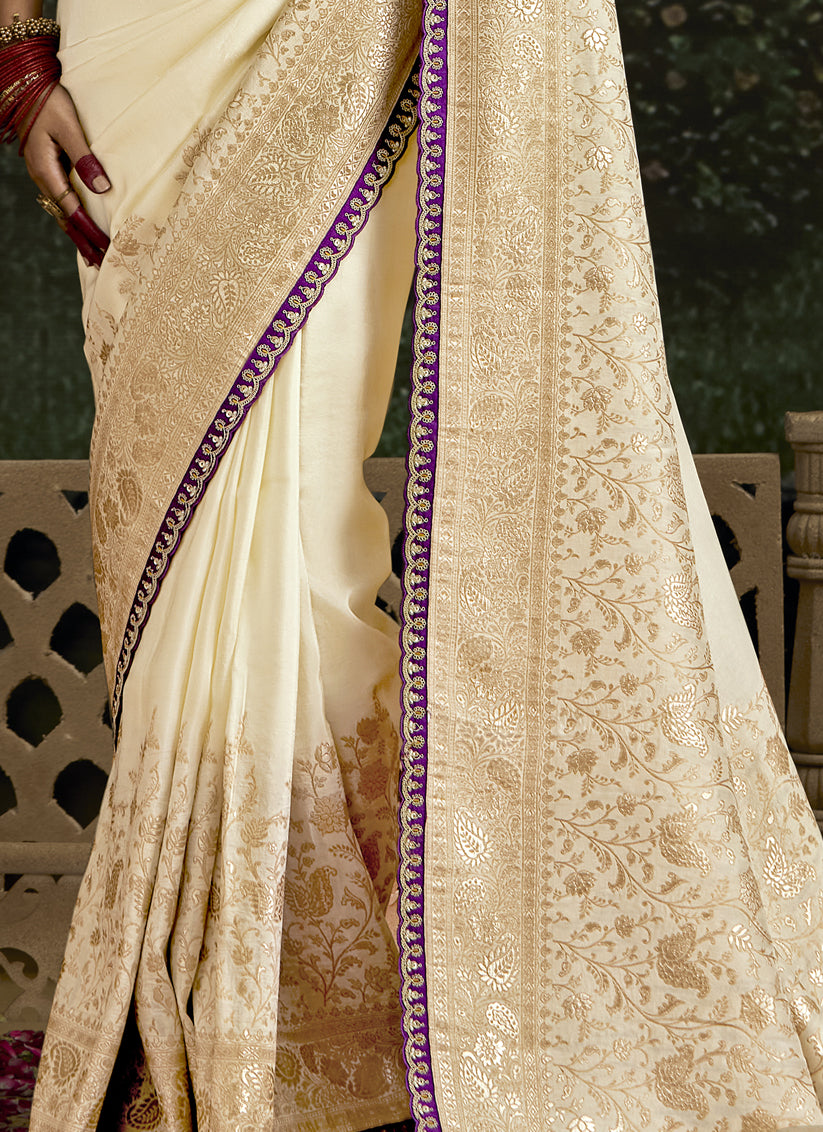 Sleek Ivory Dola Silk Embroidered Wedding Saree