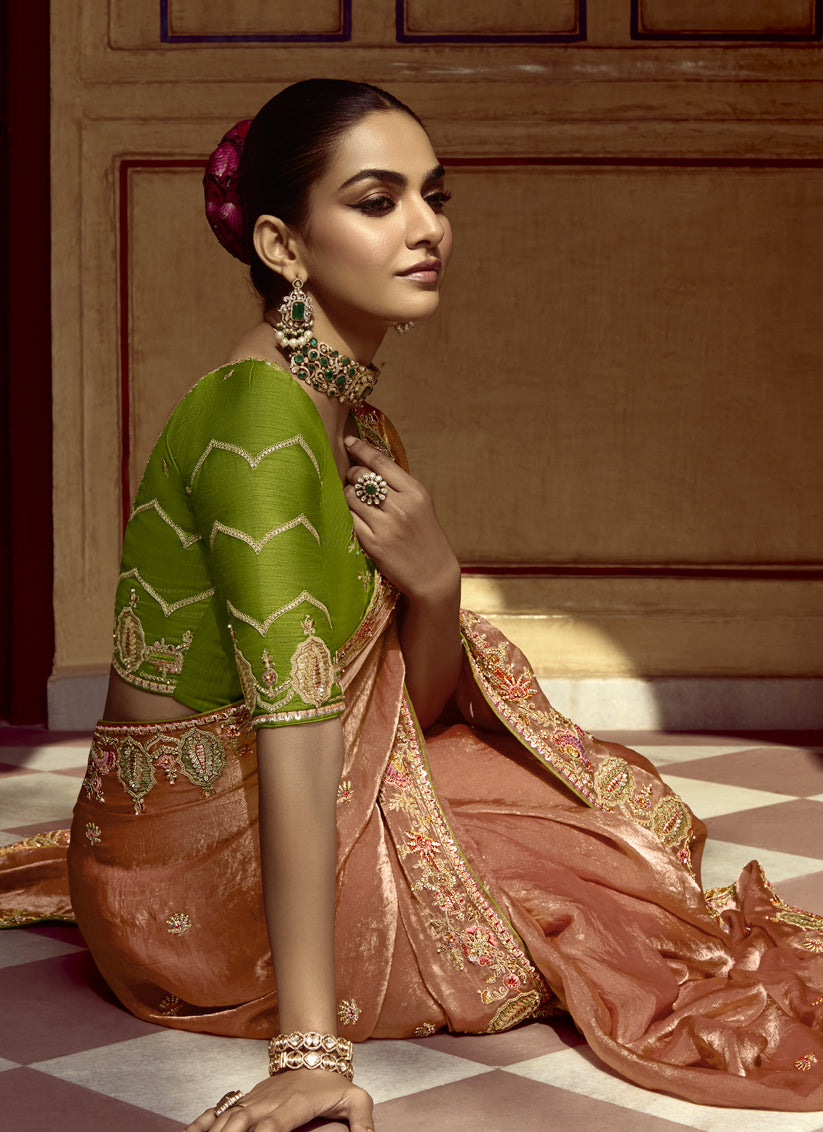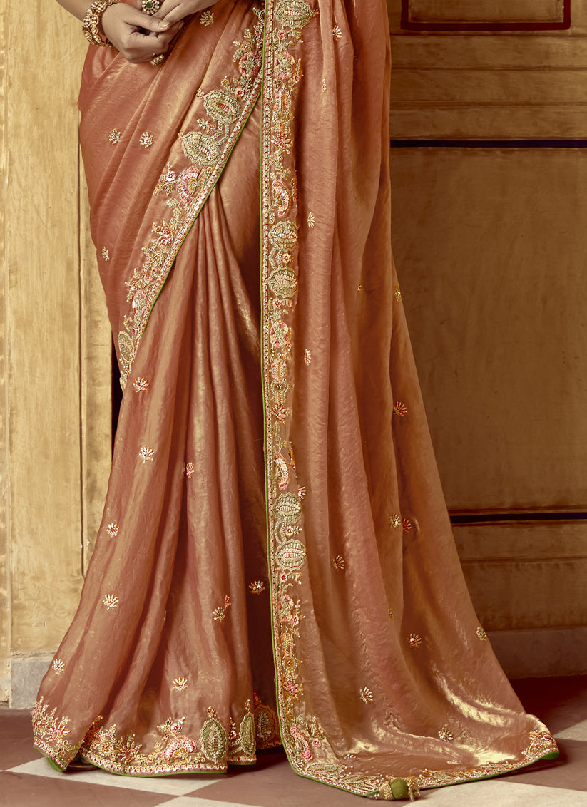 Spectacular Salmon Orange Embroidered Designer Wedding Saree