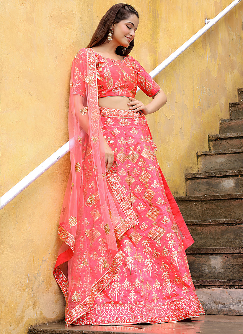 Fabric: Choli (Blouse) - Slub Silk, Lehenga - Slub Silk, Dupatta - Soft Net