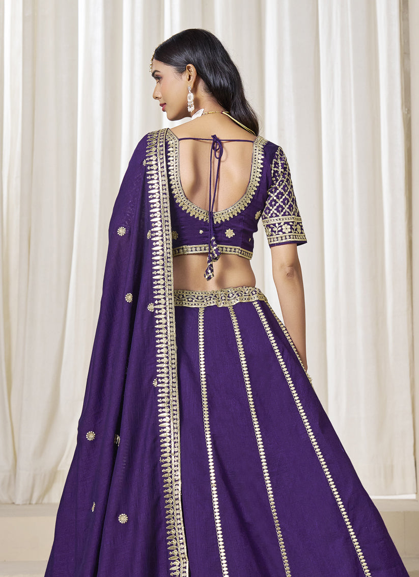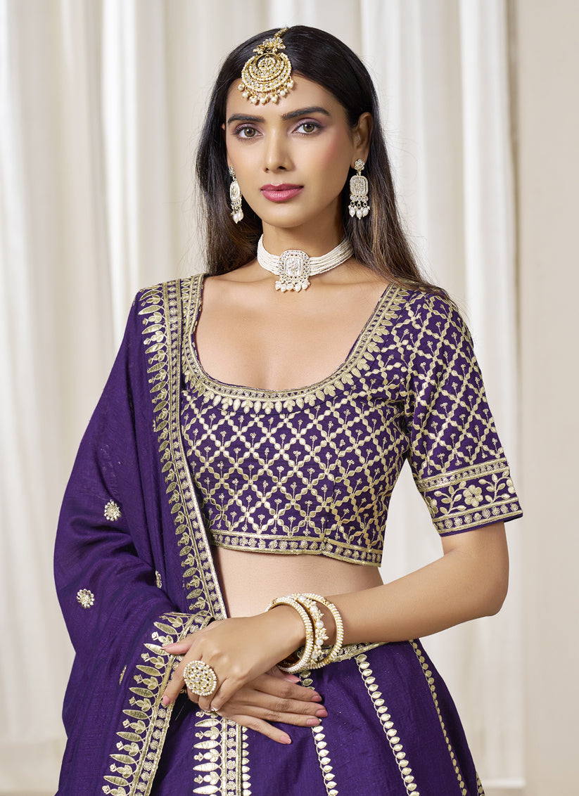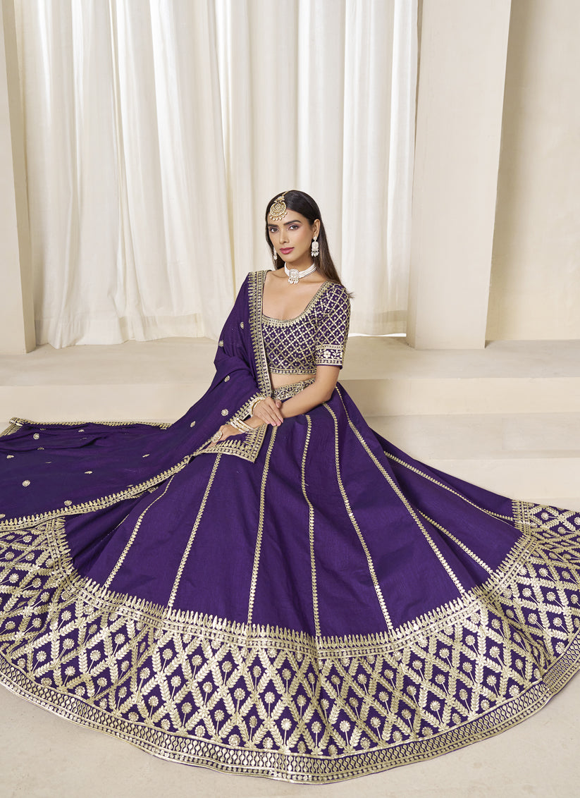 Unique Purple Art Silk Lehenga Choli Set for Wedding