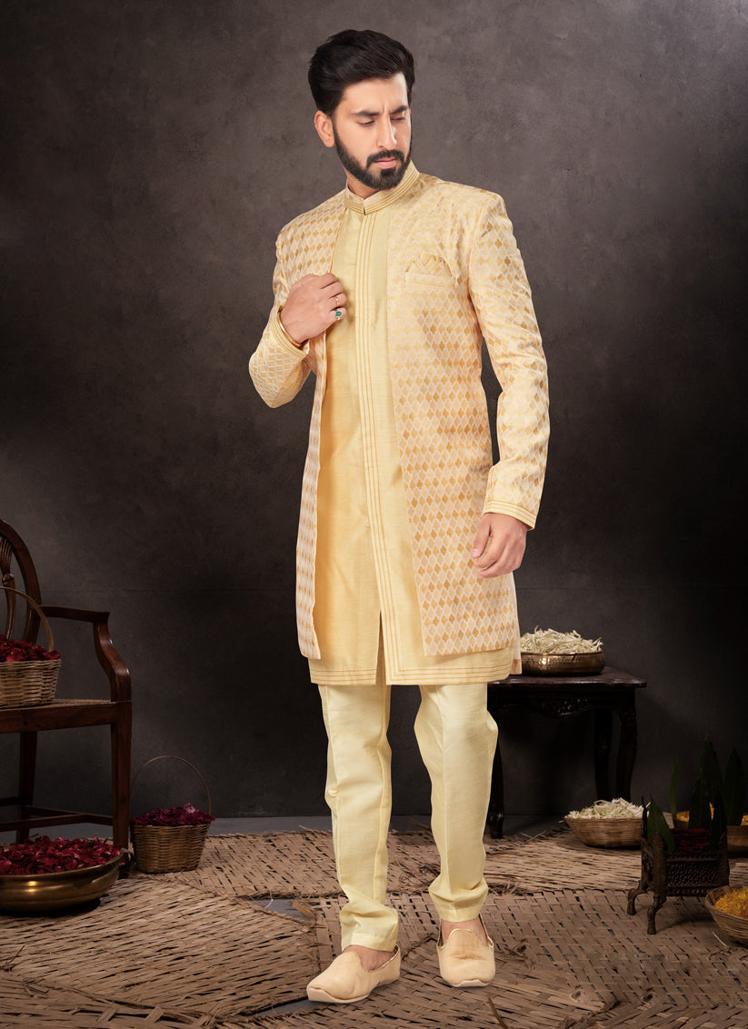Yellow Mens Designer Indo Western Fabric (Top) : B Brocket Jacquard, Bottom - Art Silk Work: Printed work Dispatch Time:... Read more